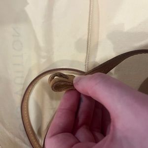 Wear: canvas is in fantastic condition. Hairline scratches in hardware from normal wear and tear. Crossbody leather strap is splitting on one end (I bought it this way) but it doesn’t affect its wear, and is largely unnoticeable once it’s attached to the bag.