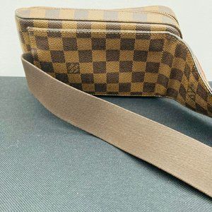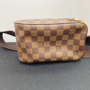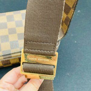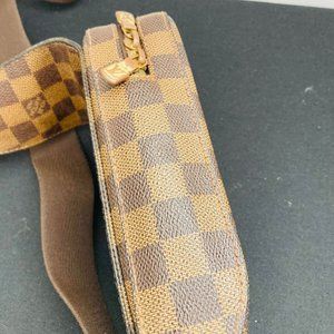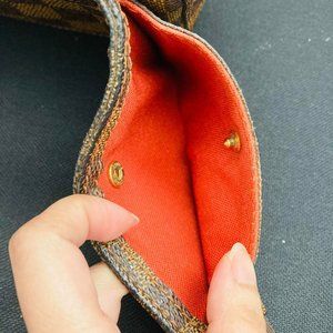 There are tarnished hardware on zipper and light scratches on the metal hardware and no stains on the interior, overall the bag is in good condition.