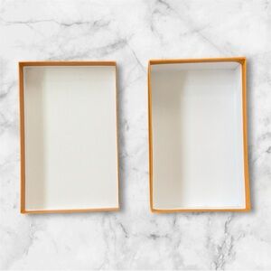 This Louis Vuitton small gift box or can be used for jewelry storage, in a striking gold orange color is a luxurious addition to any decor.