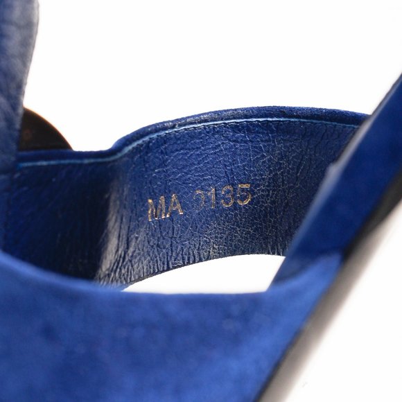 Louis Vuitton Gold-Medallion Blue Suede Knot Flat Sandals, Size 6.5
