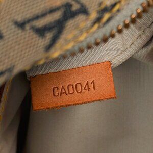 Made in Spain, this Jeanne GM bag from Louis Vuitton is crafted with the designer's Mini Lin monogram canvas in a greyish blue, and features natural cowhide leather trim, gold-tone hardware, an adjustable shoulder strap, and a front slip pocket. Fixed with two pulls, the top zip closure opens to a white textile-lined interior containing a single slip pocket.