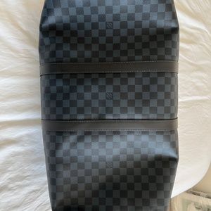 Pristine condition, used once Louis Vuitton Keepall Bandouliere 55. Lock, keys, tag, shoulder band are all available and in mint condition.