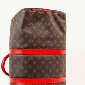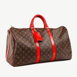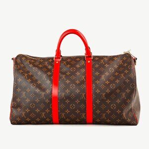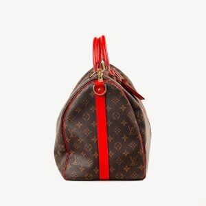 Louis Vuitton Keepall Bandoulière 50 Monogram Canvas & Coquelicot Leather Bag