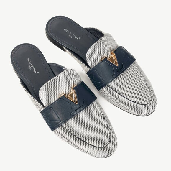 Louis Vuitton LV Mare White & Navy Open Back Loafers