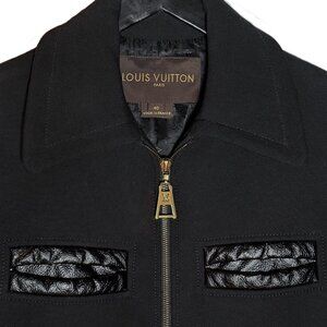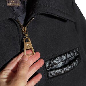 From the 2014 Fall Winter collection. Made of wool, it features leather-trimmed pockets and an gold-tone zipper pull with engraved LV monogram. Fully lined with signature Louis Vuitton monogram jacquard. Made in France.