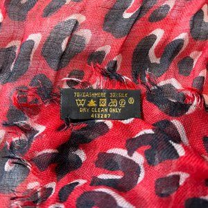 Elegant cashmere and silk stole in the Red Leopard colourway. Louis Vuitton graffiti signature by Stephen Sprouse on bottom in contrasting colour blue/purple. Beautiful to wear during the transitional months. Dimensions: 135 x 195 cm - 53.1 x 76.8 inches. Fabric make-up: 70% Cashmere, 30% Silk. Only work a few times. In like-new condition.