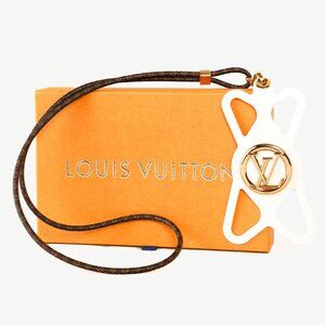 The Louise phone holder from Louis Vuitton is crafted in the designer's Monogram coated canvas, and features gold-tone hardware, a detachable strap with a lobster clasp at the end, and a white rubber body with a round LV motif.