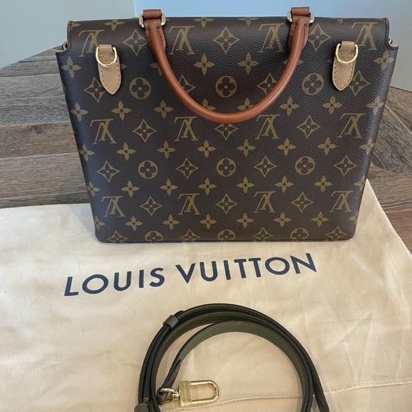 Gorgeous LV Marignan with cream leather. This bag was barely used and could pass as brand new. The strap was NEVER used as I used my thicker monogram bandoliere. The inside is impeccable. This is a perfect crossbody bag but can also be elegantly worn on the arm. The front pocket is great for phones. Lots of interior space but not bulky.