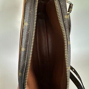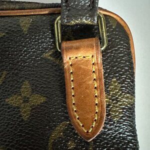 Louis Vuitton Vintage 1990 Monogram Marly Bandouliere Crossbody Bag. Small zippered rectangular crossbody bag with signature monogram body and vachetta leather trim. Date code TH0930 for production year 1990. Measures 8.5 x 5 x 1.75" with a 24" strap drop. Excellent pre-owned condition with some wear to leather trim as pictured.