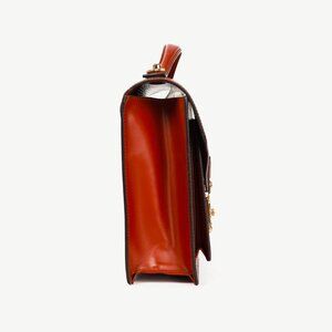 This France-made Monceau 28 bag from Louis Vuitton is crafted with the designer's Epi leather in a mahogany brown, and features gold-tone hardware, a top handle, a detachable and adjustable shoulder strap, and a debossed logo on the bottom front corner. Secured with a clasp closure, the front flap opens to a tonal interior containing a slip pocket, and a zip pocket.