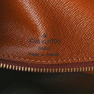 This stylish shoulder bag is crafted of Louis Vuitton monogram toile canvas. The bag features vachetta cowhide leather trim and an adjustable looping shoulder strap with brass hardware. The top zipper opens the bag to a terra cotta cross-grain leather interior with a zipper pocket.