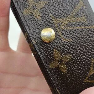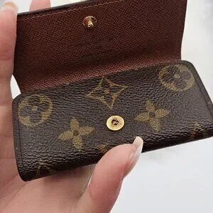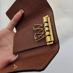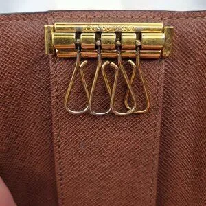 Gold snap locked to a brown cross-grain leather interior with four gth key rings.
