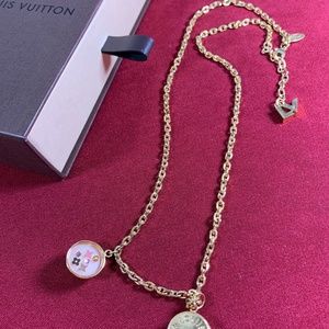 Louis Vuitton Monogram Necklace ~ Gold & Pink ~ Authentic