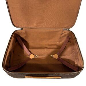 This is an exceptional piece of luggage made by the leading experts in luxury travel goods. Crafted of durable Louis Vuitton monogram toile canvas and reinforced by cowhide leather piping at the borders, this travel case also features a wide pocket on the front. Additional features include a leather top handle and a state of the art pull out handle and wheel mechanism, accented by polished brass hardware. The 3/4 wrap around zipper opens to a sturdy canvas fabric interior with storage straps. This is an excellent suitcase for travel of all sorts, from Louis Vuitton!