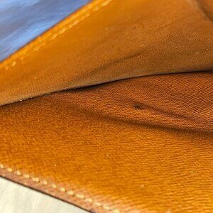 Made in Fr/SP1011, crafted from monogram toile canvas, this wallet opens to reveal a terra cotta cross-grain leather interior.