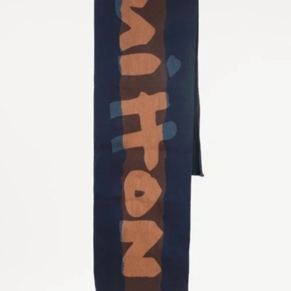Louis Vuitton Navy Brown Letters Wool Scarf