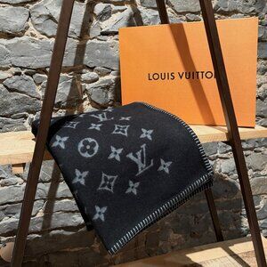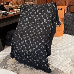 Louis Vuitton Neo Monogram Eclipse Black Wool Blend Blanket