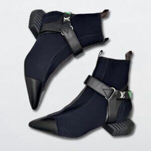 Louis Vuitton Neoprene Deep Sea Strap Ankle Boot Leather Pointed Toe Black EU 38