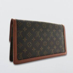 Louis Vuitton PM Clutch Bag Monogram Pochette Dame 29 GM Leather Trim Brown OS