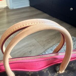 This stunning Louis Vuitton Pallas MM is in excellent preloved condition. Crafted in iconic Monogram canvas with a vibrant pink leather trim, it offers both elegance and functionality.