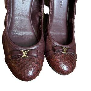 Louis Vuitton Python Elba Flats Burgundy Leather Ballet Shoes