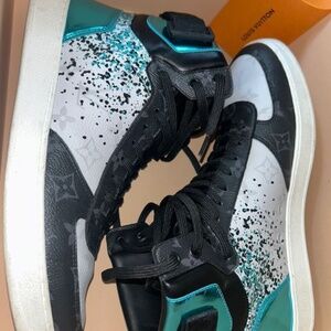 Barely used Louis Vuitton Rivoli ankle sneakers in size 8 metallic blue