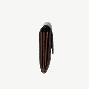 This Sarah wallet from Louis Vuitton is crafted with the designer's brown Monogram canvas, and features gold-tone hardware, a front flap with a snap closure, solid brown lining, a zipped coin pocket, three compartments for bills, and ten card slots.