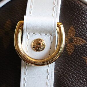 Crafted from Louis Vuitton's durable Monogram coated canvas with eye-catching white leather trim.