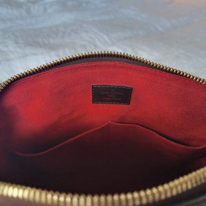 Interior: Red suede interior with 2 open pockets and a key loop. Inside suede is pristine with absolutely no stains, marks or odors.