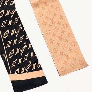 This Trunk It bandeau from Louis Vuitton circa 2015 is crafted in a pure silk, and is printed with the designer's Monogram pattern in champagne gold on one side, and a black Monogram trunk pattern on the other, perfect for an everyday accessory.