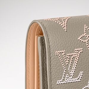 Travel in style with the Flight Mode edition of the iconic Louis Vuitton Victorine Wallet. A compact yet functional piece crafted in luxe taupe Monogram Empreinte leather with perforated LV logos in blush and white.
