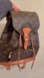 Elegant Louis Vuitton backpack with iconic monogram. Rich brown leather accents. Perfect for style and function.