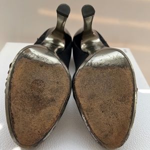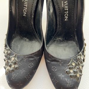 These are stunning Louis Vuitton logo monogram pumps with bejewelled elements