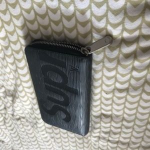 Exposed zip-around closure Eight card slots, four flat pockets, single zip compartment, two bill slots, Leather lining Silver hardware Length: 7.75" (20 cm) Height: 4.25" (11 cm) Depth: 1" (3 cm) Made in France 2017