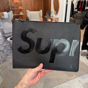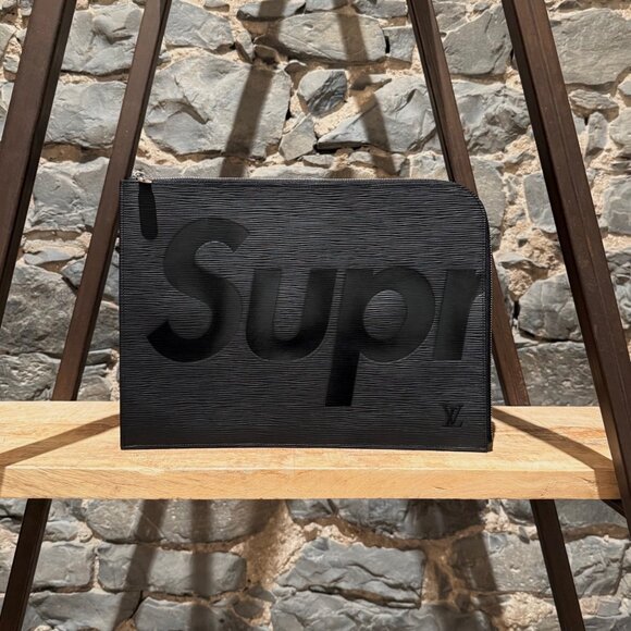 Louis Vuitton X Supreme FW17 Black Epi Logo Pochette Jour GM Pouch