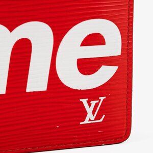 The Louis Vuitton X Supreme Slender Red Epi Leather Wallet effortlessly combines streetwear style with luxury. With its compact design, this wallet is perfect for carrying essential cards and cash. The iconic Supreme logo in white against a bold red Epi leather background makes a statement, while the subtle Louis Vuitton logo adds a touch of sophistication.