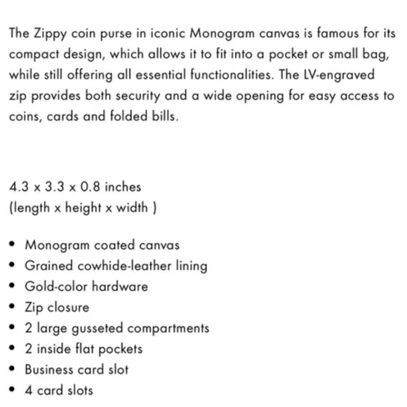 Brand: Louis Vuitton Model: Monogram Zippy Coin Pouch