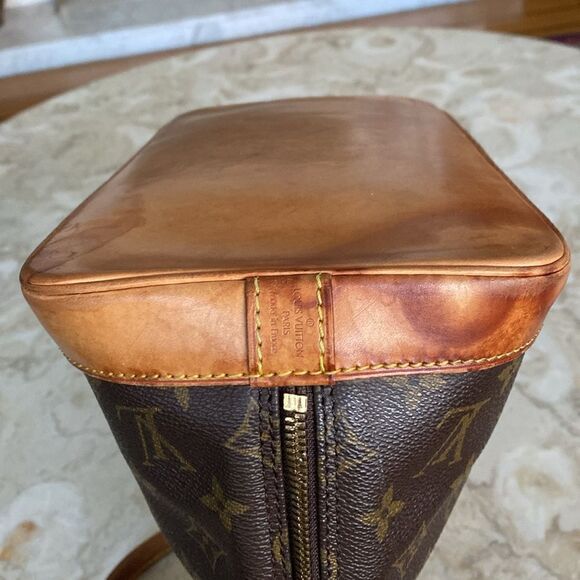 This classic luxury bag comes complete with original Louis Vuitton lock and two keys and cotton dust bag. Interior is totally clean and has a slip pocket. Canvas has no issues, no cracks or stains. Zipper runs smoothly. Dual handles are also in good shape with no dryness or cracking. Bottom vachetta leather trim does have water marks (see photos) but these are not major. Overall vachetta leather has a sweet vintage honey tone patina.