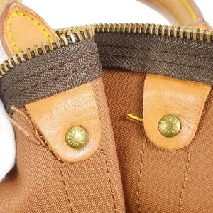 Authentic Vintage Louis Vuitton Keepall Bandouliere size 60 in monogram canvas w/ strap & luggage tag. The vachetta is in overall great condition, with an even honey patina throughout. The leather pieces across the body have some minor scratches, water stains, and some cracking/dry spots. The handles are not overly darkened (rare for LV bags), with some minor scratches and slight dry spots but no cracking. The imperfections of the vachetta are consistent with age/use, and would be improved through leather conditioning. The crossbody strap has a few dark spots, water marks, and dryness/cracking, but no major issues and is generally good condition. The canvas is in excellent condition, no fading or cracking. All the hardware is in tact and zipper functions without issue. Interior lining is in great condition, it is clean with no rips or damage, some very minor staining. The date code is faded but appears to be VI0951, Made in France May 1991 . Comes with luggage tag and crossbody strap but does not come with dustbag or original receipt. Overall amazing condition for its age!