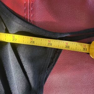 This elegant black sleeveless apron dress is perfect for many occasions. Its sleek design offers a timeless look. The weighty fabric gives a beautiful drape and slinky movement. There are 4 ties total, you start by tieing the rear two around the front at front of waist, and then take the two front side ties and overlap the rear panel to tie at the back of your waist. You could do this in reverse for a different waistline cinch look. I bought this dress from a vintage store Inused to work at in Dublin, Ireland.