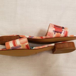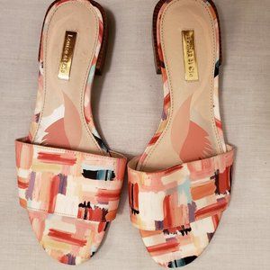 Louise et Cie Lo Aydia Coral Multi Multicolor Red Pink Orange Blue Cream Ivory Abstract Watercolor Paint Brushed Print Flat Slide Sandals Shoes 7 M 37.5 BNWOT