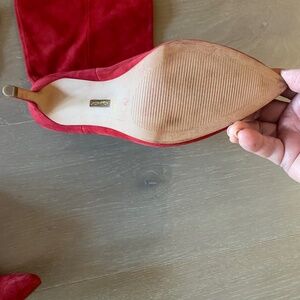 Women's,Louise et Cie red suede, dressy, pull on,knee high boots with 3.5' stiletto heel in size 8. Brand new
