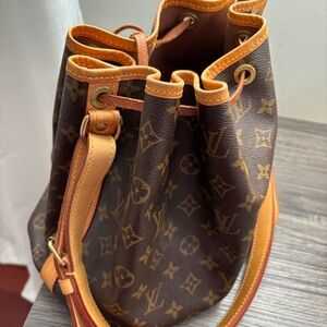 The Noé bucket bag harks back to a design from 1932. A Champagne producer asked Gaston-Louis Vuitton to develop a sturdy, stylish bag in which he could transport five bottles of bubbly. This model in body-friendly Monogram canvas retains key features of the original – the iconic shape, generous volume, drawstring closure – but is made for modern life. The leather strap adjusts for comfortable shoulder wear.