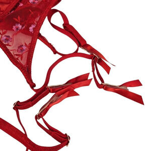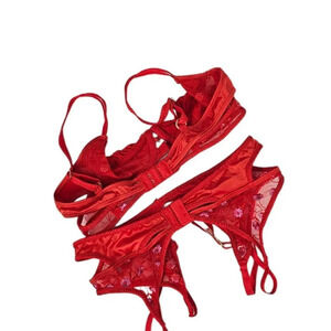 Lounge Katya Intimates Bra / Garter Set Size 34 A and M Garter Red Embroidered