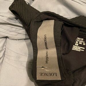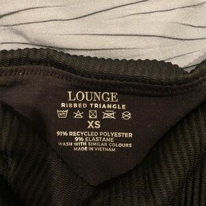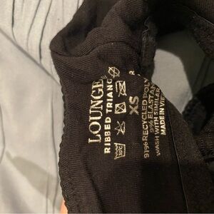 ribbed black underwear top and matching bottom. Soft, textured fabric with supportive triangle top and flattering low-rise bottom. Top has been used once and bottom still new with tags.
