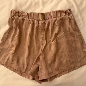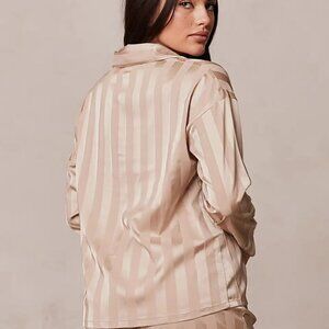 Like-new, barely worn Striped Satin pajama set (shirt and shorts) from Lounge in the colour "Mink". Both items in size medium. Currently sold out online.