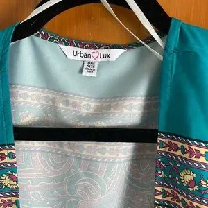 Silky lounge robe. Could be worn over swimsuit too. Multicolour paisley print.