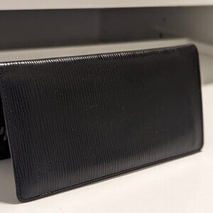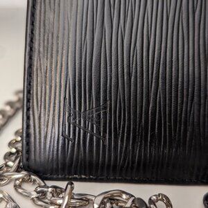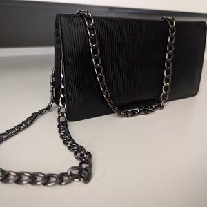 Excellent used condition Louis Vuitton Brazza wallet/wallet on chain. Black epi leather. Comes with your choice of chain color; gold or silver.