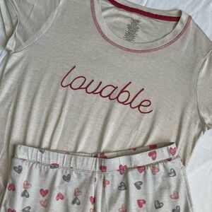 #Lovable #CreamPJs #PinkHearts #PajamaSet #CozySleep #Preloved #Poshmark #Vipsales2022 #ComfyClothes #WomenPJs
