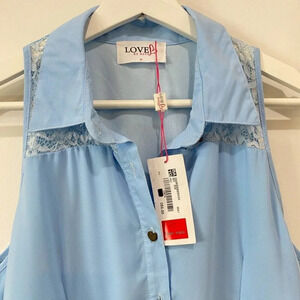 Love By Bayo Women's Med Blue Lace Fitted Flare Dress in Baby Blue NWT Lined
